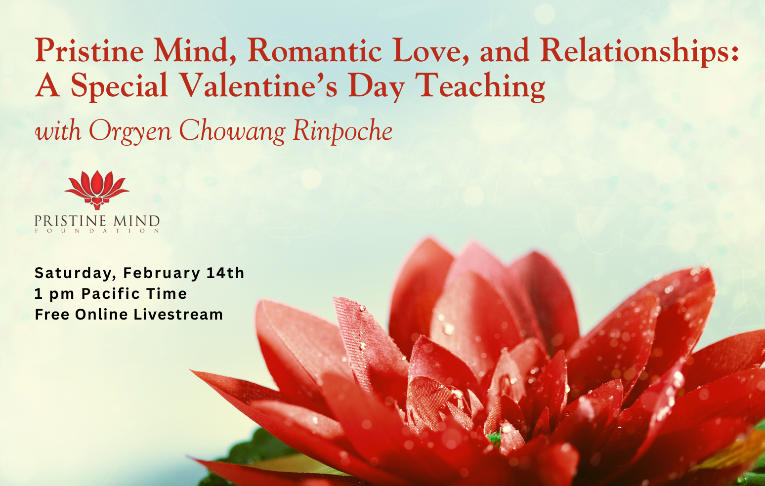 In this free live stream, Orgyen Chowang Rinpoche will offer A Special Valentine’s Day Teaching on Pristine Mind, Romantic Love, and Relationships.