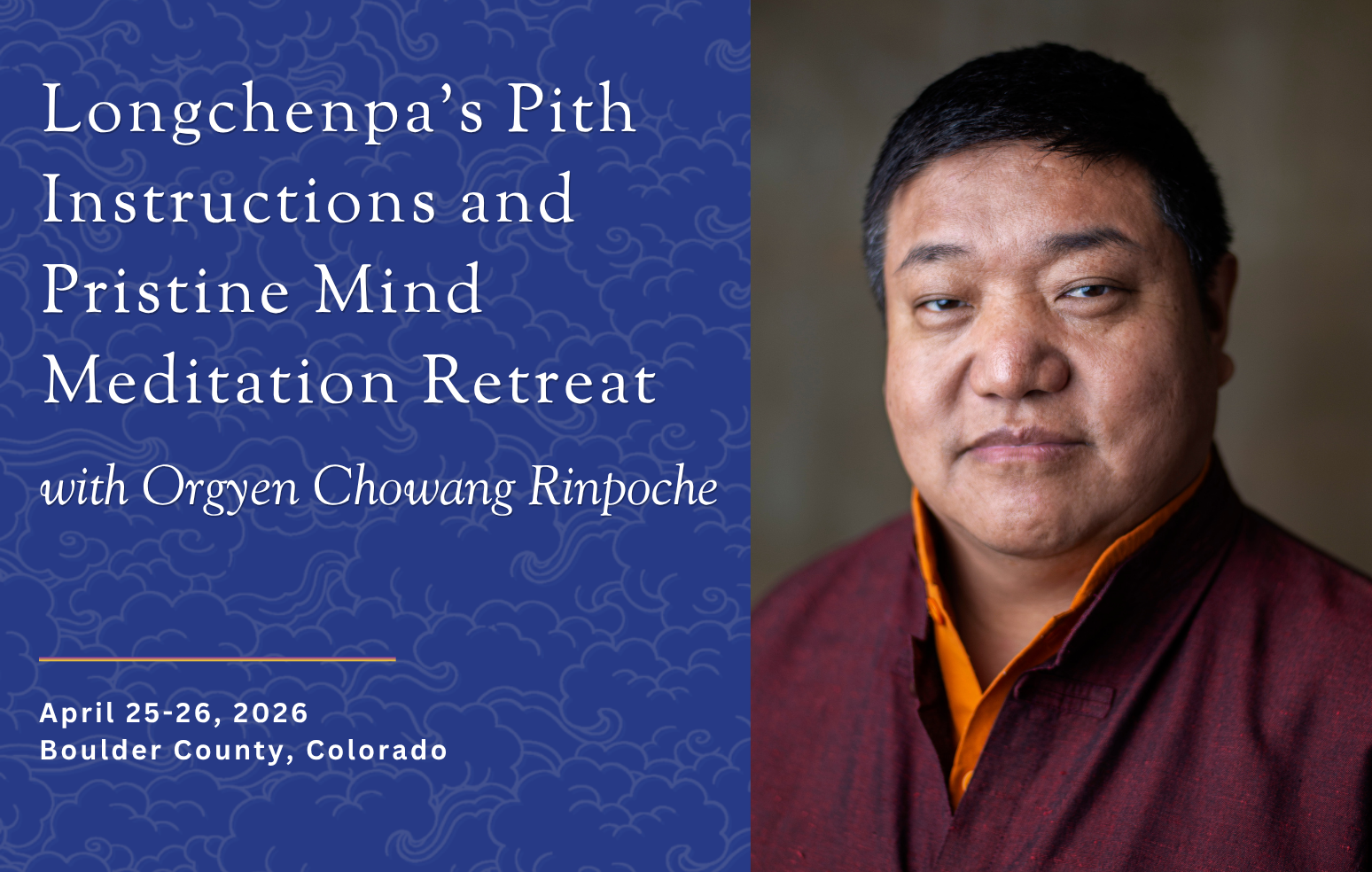 In this retreat, Rinpoche will be using Longchenpa’s Precious Treasury of Essential (Pith) Instructions, the famous Mengak Dzo, and instruct participants in the meditation of “Pristine Mind”, which is rooted in the mind-class teachings of the Dzogchen tradition and is the subject of Rinpoche’s book, Our Pristine Mind.