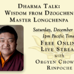 Saturday, December 20th 1:00pm – 2:15pm Pacific Time In this free live stream, Orgyen Chowang Rinpoche will be teaching on Dzogchen Master Longchenpa’s Wisdom. This session will include an opportunity for questions and answers. Spanish and Chinese language interpretation will be available for this session. Please note: There is a limit to the number of people who can watch the live streams as they air, so we suggest logging on…